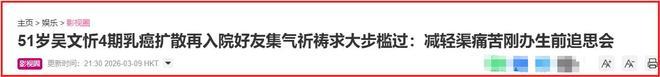 在这次访谈多日后,吴文忻的好友透露她已经再次住院治疗,并希望大家一起为吴文忻祈祷,希望她能渡过难关。